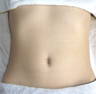 開腹手術(術創約10~15cm)と比較すると従来の腹腔鏡下手術もはるかに傷が短い(計4~6㎝)ですが、このように単孔式腹腔鏡手術はさらに短く(2~3㎝)、しかも臍を使用するのでほとんど目立たなくなります。(一方で、臍の小さい患者さんは、2~3cmの傷、3本の器具を入れることによる皮膚の圧挫等で臍の形が変わることもあります。)